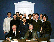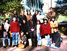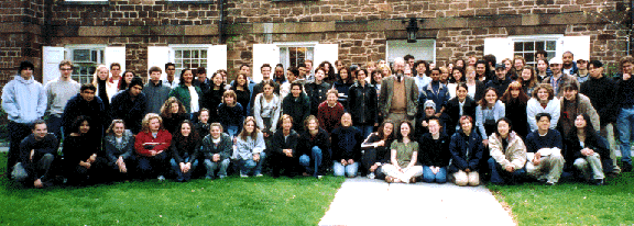 of the statue of William the Silent in the old quad This group is a great example of why so many faculty consider it a privilege to teach at Rutgers. Look carefully at the picture. It appears, does it not, to be a group of normal, happy, delightful American university students? And it is, partly. Happy they were, most days. Delightful they were, tous les jours. Normal they were not. Every student in the picture was able to go home at night and read an hour of Locke in English, then two hours of Montesquieu in French, an hour of Swift or Gibbon in English, then an hour or two of Voltaire or Rousseau or Diderot in French. And this they did, night after night, week after week, until we had covered the Enlightenment from Locke and Newton to the French Revolution. It was, in its way, heroic. (If you look carefully at the New Historicism seminar and the Mirror of Enlightenment picture, you will see that two students, Rob Young and John Davies, are present in both. Old men forget, and all shall be forgot, but they'll remember with advantages what deeds we did those days.) I hope eventually to teach several other seminars in two languages (English and Latin, English and German), so I am leaving the original Mirror of Enlightenment course description in place as a sort of prototype. If you have friends who are Classics majors or German majors who might want to take such a seminar -- or who are English majors able to read Latin or German at an advanced level of competence -- tell them to come to this page and click here on Mirror of Enlightenment. They should get in touch with me if they would be interested in a similar course in their language. In spring semester 2002